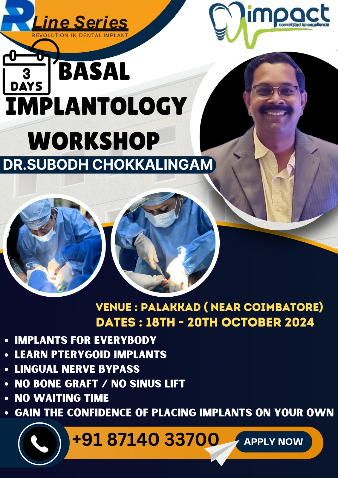 The Workshop on 3 DAYS BASAL IMPLANTOLOGY COURSE conducted by Dr. Rohan Virani aims to provide dental professionals with comprehensive knowledge and practical skills.