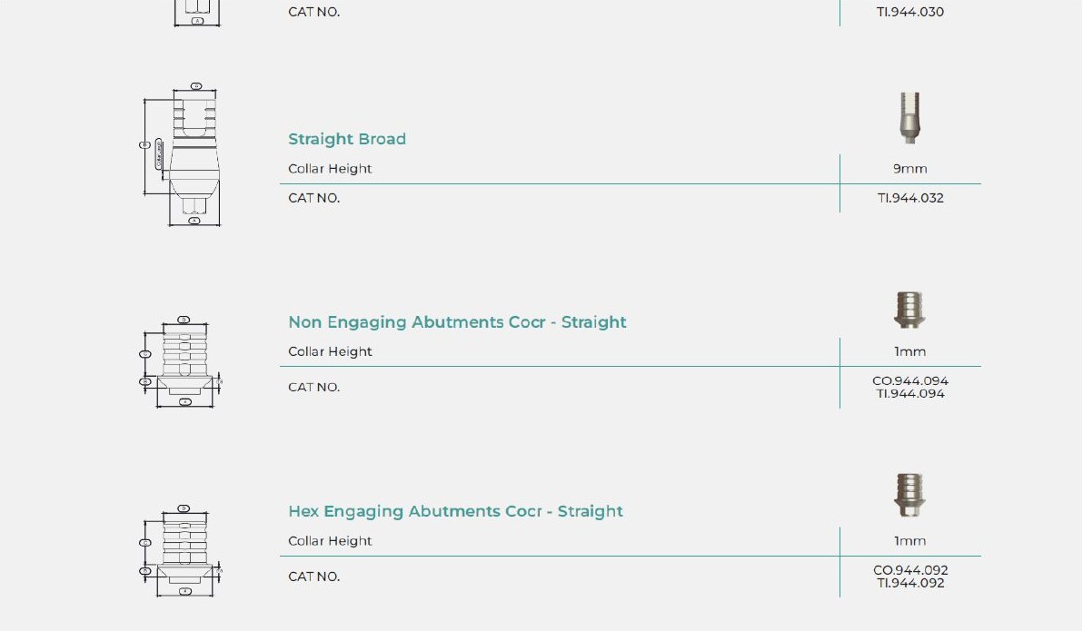 Abutment For Internal Hex Screw Standard - Straight | ||||